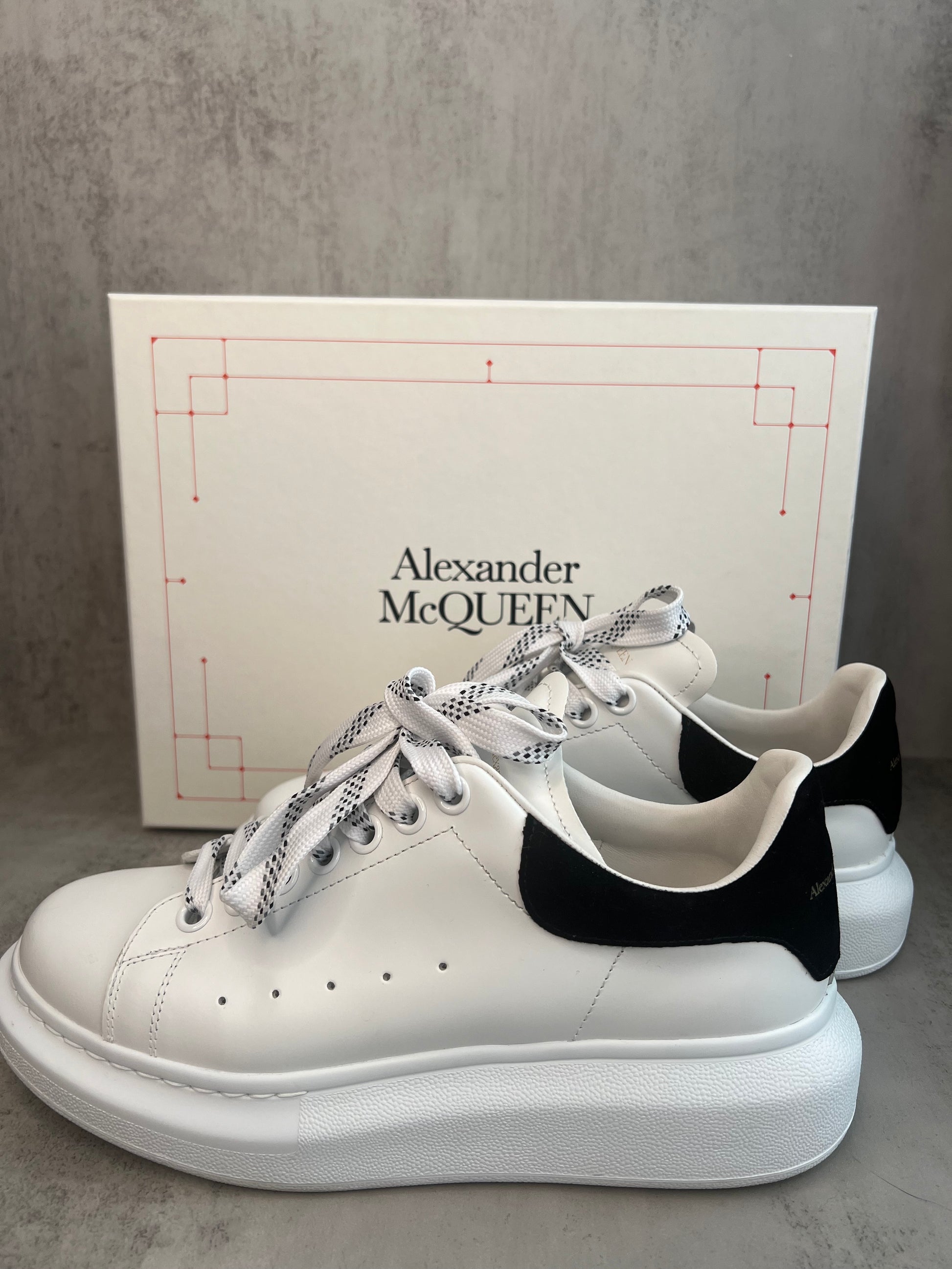 Alexander McQueen's Oversized suede sneakers feature a colorblocked accent at the heel. This design is finished with embossed logo lettering.