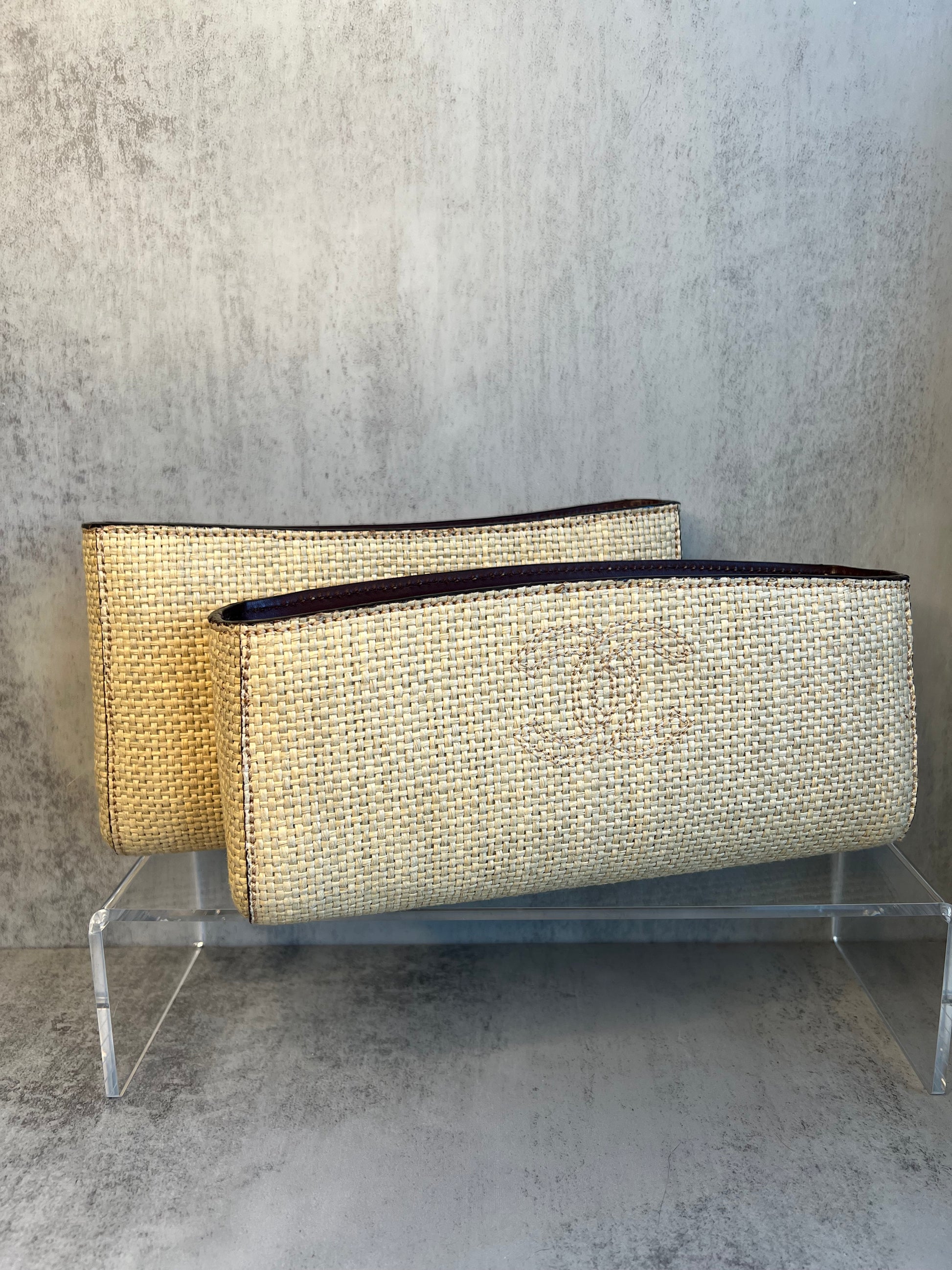 CHANEL (1997-1999) Raffia CC Mark Stitch Clutch