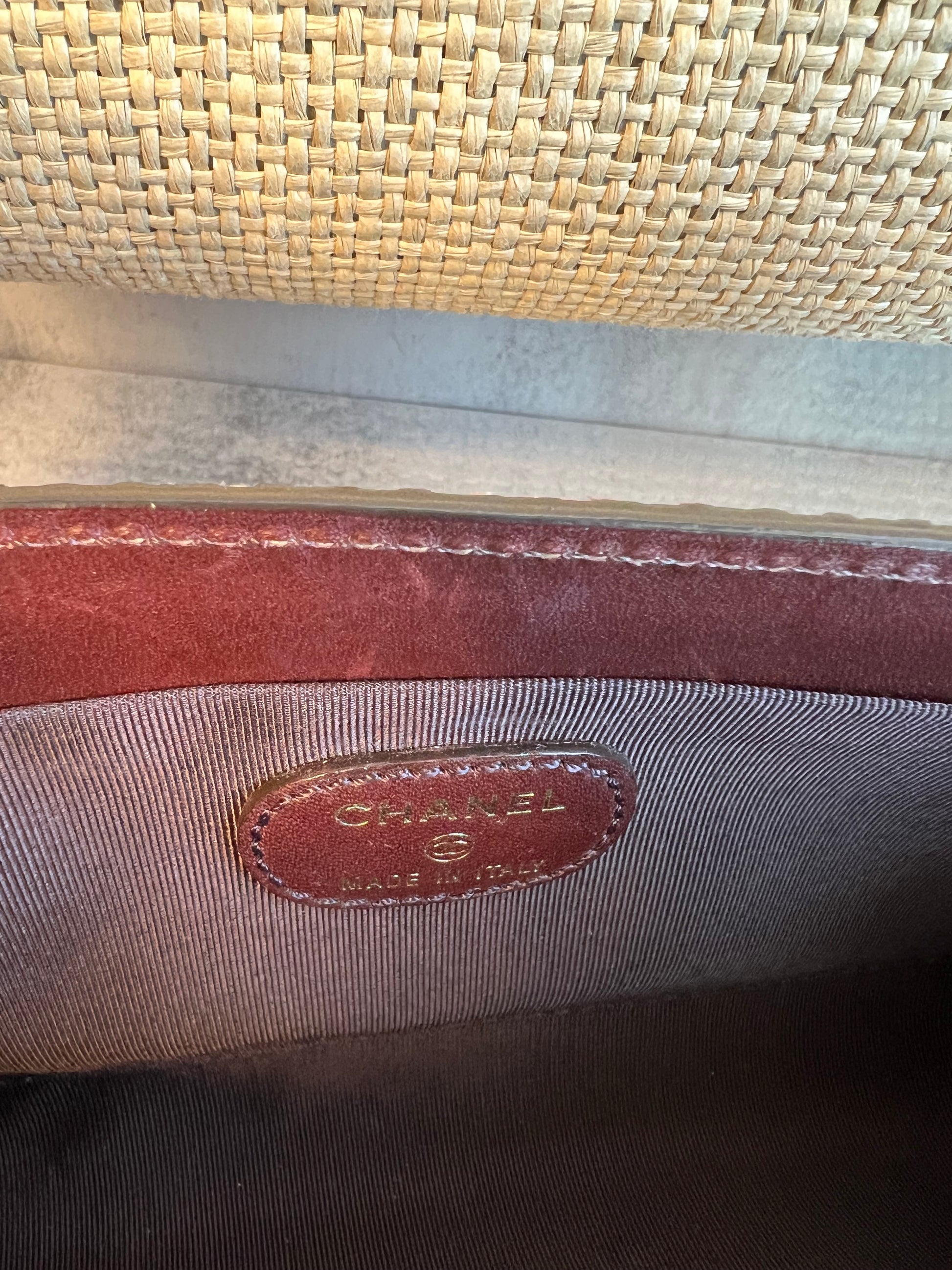 Experience the rarity of CHANEL's Vintage CC Mark Stitch Raffia Clutch, a beautiful addition to your luxury handbag closet. This unique piece, with its iconic CC mark and impeccable stitchwork, is a must-have for any handbag connoisseur.