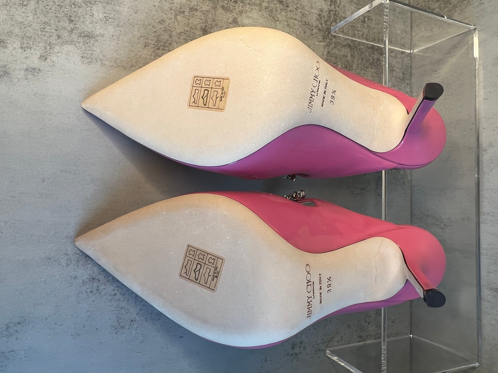 JIMMY CHOO Patent Crystal Bing 100 Pump/Mule Candy Pink size 39.5