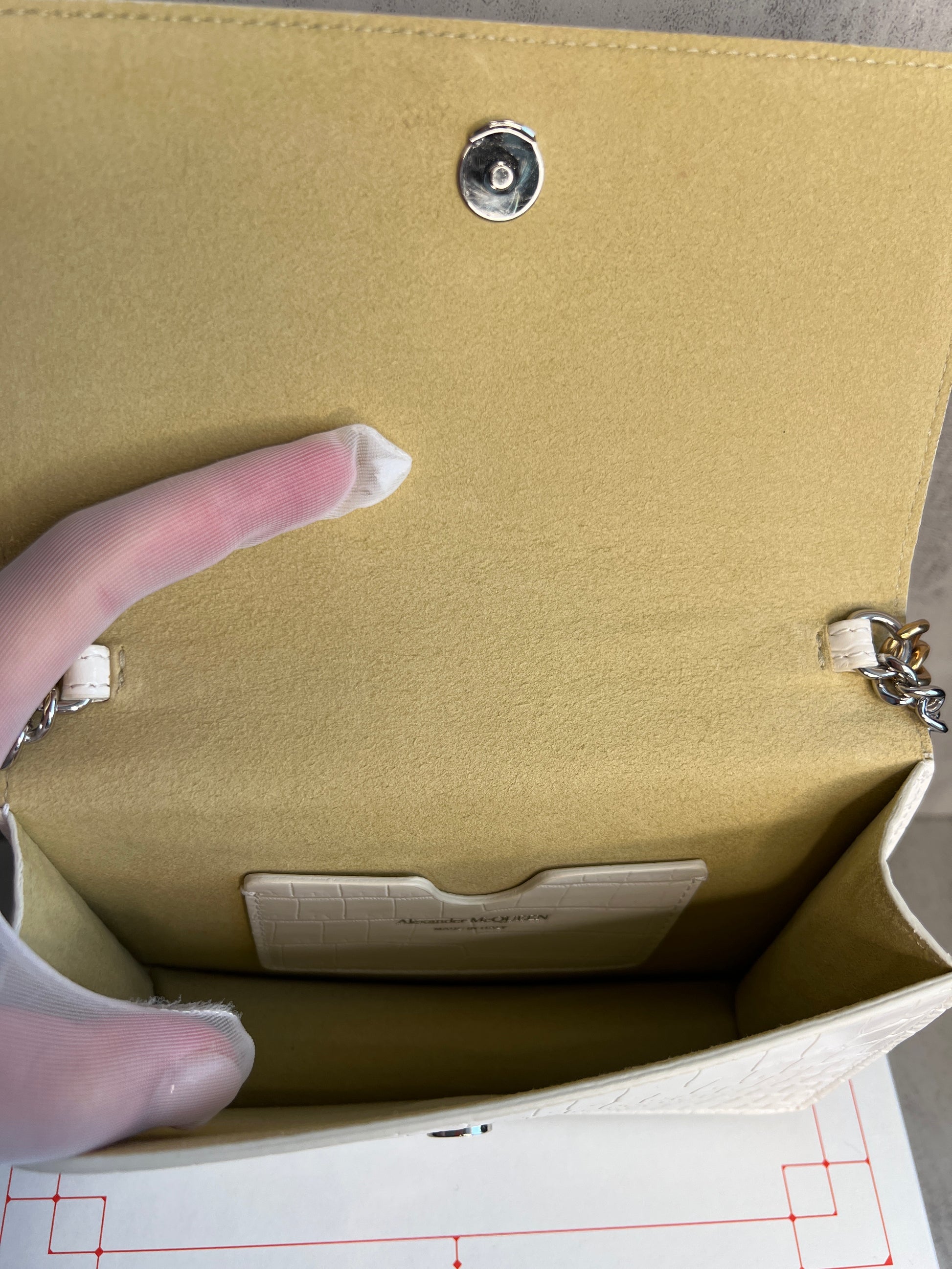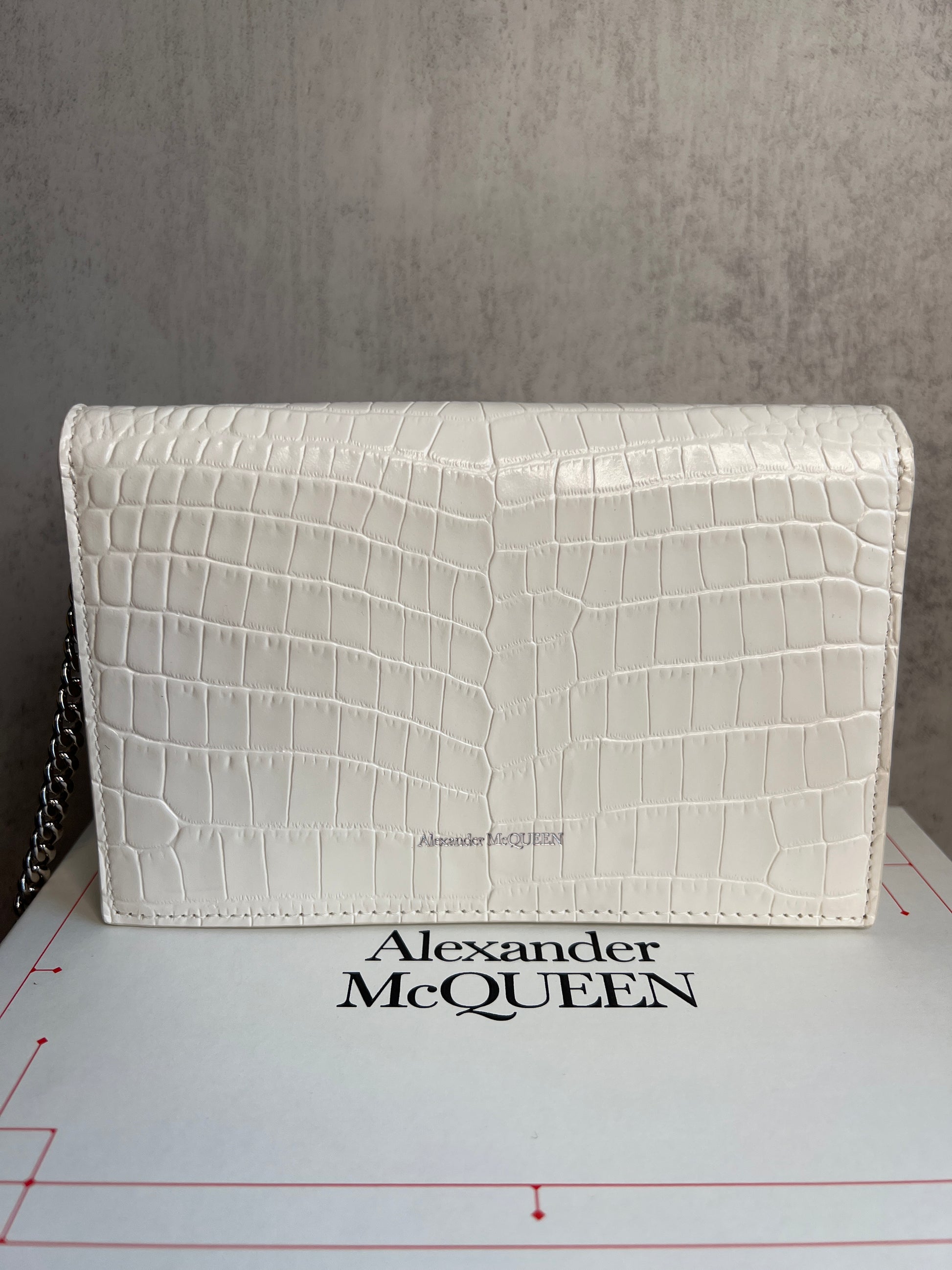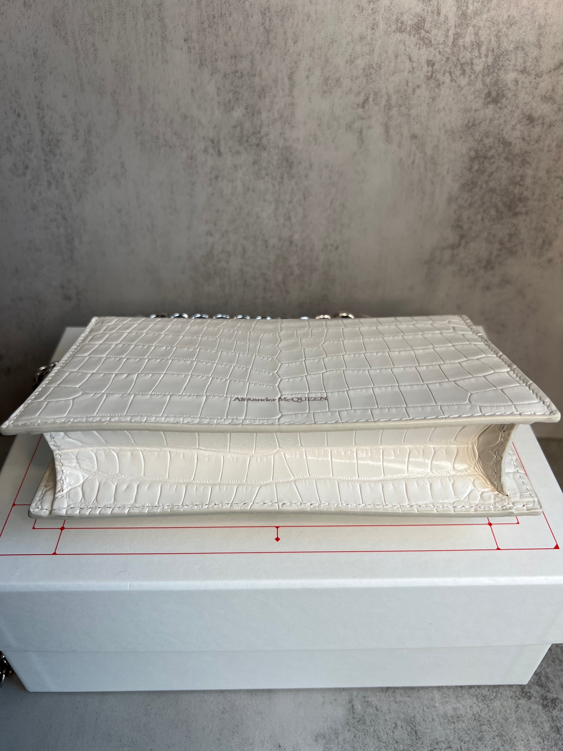 Alexander McQueen Small Skull Croc-Embossed Chain Shoulder Bag